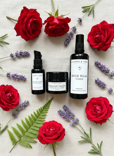 I am Veronica, the founder, formulator, and guiding force behind Flower & Fern. My journey began with a fascination for skincare and evolved through studies in biology, herbalism, and physiology, eventually finding its home on our Oregon homestead with my husband and children. There, regenerative farming practices and a respect for whole-plant wisdom inspire me to create formulas with slow-infused oils, beeswax, and tallow—skincare designed to protect the skin barrier, reduce waste, and honor the land.